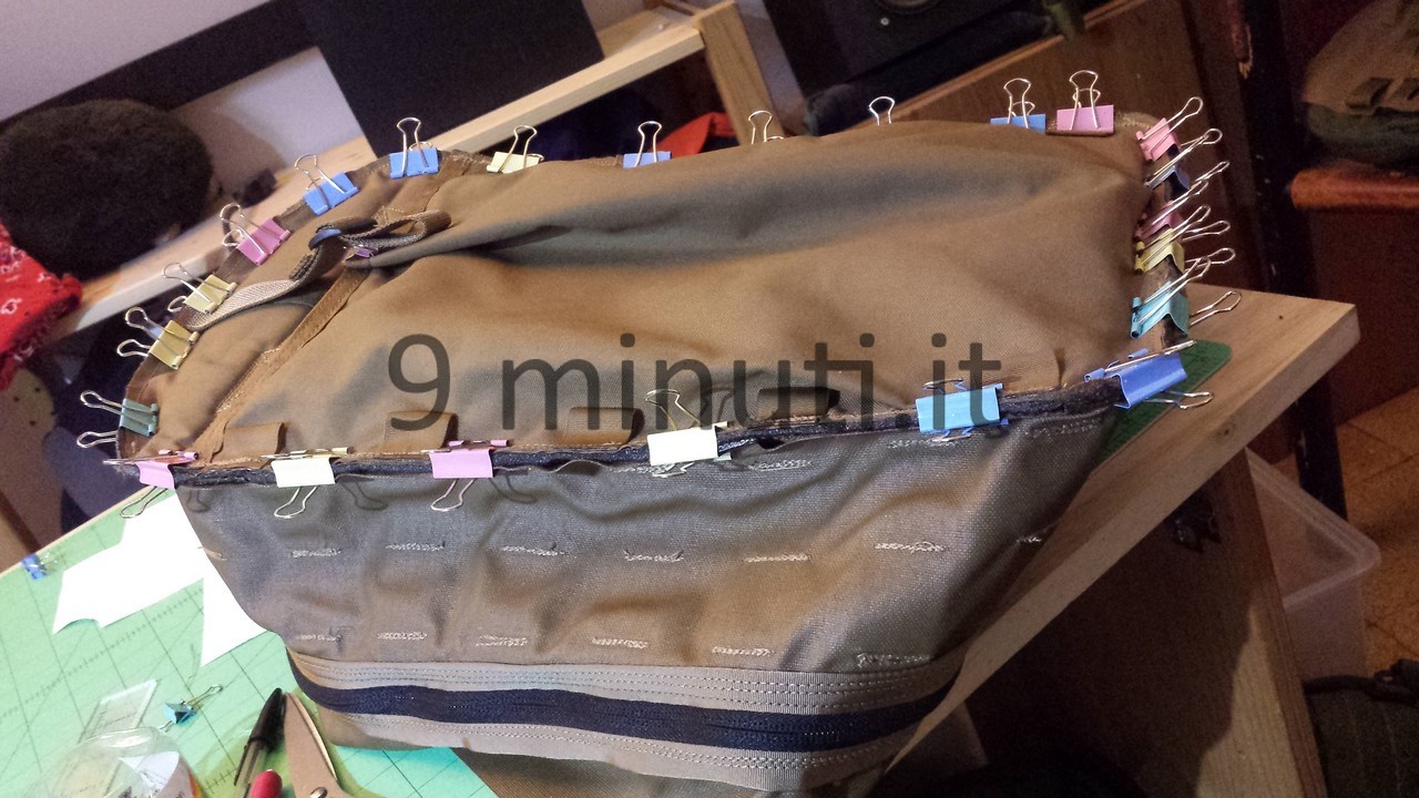 Ero infatti stato contattato da un utente di un forum per uno zaino su commissione e, non sentendomi ancora sicuro, ho preferito prima realizzarne uno per me per poi eseguire il lavoro per il mio cliente. Devo dire che fui già soddisfatto al primo colpo e con il secondo non feci altro che approntare giusto un paio di migliorie o accontentare il mio cliente con le personalizzazioni da lui richieste.